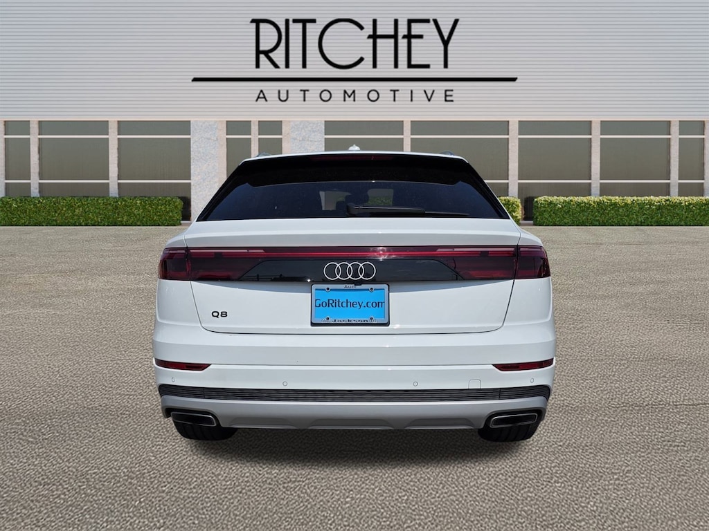 Ritchey Automotive is proud to present you with another True Market Priced Pre-Owned Vehicle. This 2025 Audi Q8 55 Premium Plus is loaded with the following Factory Options:10 Speakers, 4-Wheel Disc Brakes, ABS brakes, Adaptive suspension, Air Conditioning, Alloy wheels, AM/FM radio: SiriusXM w/ 360L, Auto High-beam Headlights, Auto-dimming door mirrors, Auto-dimming Rear-View mirror, Automatic temperature control, Brake assist, Bumpers: body-color, Compass, Delay-off headlights, Driver door bin, Driver vanity mirror, Dual front impact airbags, Dual front side impact airbags, Electronic Stability Control, Emergency communication system: Audi connect CARE, Exterior Parking Camera Rear, Four wheel independent suspension, Front anti-roll bar, Front Bucket Seats, Front Center Armrest, Front dual zone A/C, Front fog lights, Front reading lights, Fully automatic headlights, Garage door transmitter: HomeLink, Genuine wood door panel insert, Headlight cleaning, Heated door mirrors, Heated Front Bucket Seats, Heated front seats, Illuminated entry, Leather Seating Surfaces, Leather Shift Knob, Leather steering wheel, Low tire pressure warning, Memory seat, Navigation system: Audi MMI Navigation with Touch Response, Occupant sensing airbag, Outside temperature display, Overhead airbag, Overhead console, Panic alarm, Passenger door bin, Passenger vanity mirror, Power door mirrors, Power driver seat, Power Liftgate, Power moonroof: Panoramic, Power passenger seat, Power steering, Power windows, Radio data system, Radio: Audi MMI Nav Plus w/MMI Touch Response, Rain sensing wipers, Rear air conditioning, Rear anti-roll bar, Rear fog lights, Rear reading lights, Rear seat center armrest, Rear side impact airbag, Rear window defroster, Rear window wiper, Remote keyless entry, Security system, Speed control, Speed-sensing steering, Split folding rear seat, Spoiler, Steering wheel memory, Steering wheel mounted audio controls, Tachometer, Telescoping steering wheel, Tilt steering wheel, Traction control, Trip computer, Turn signal indicator mirrors, Variably intermittent wipers, and Wheels: 21" 5-W-Spoke Design Bicolor Finish.