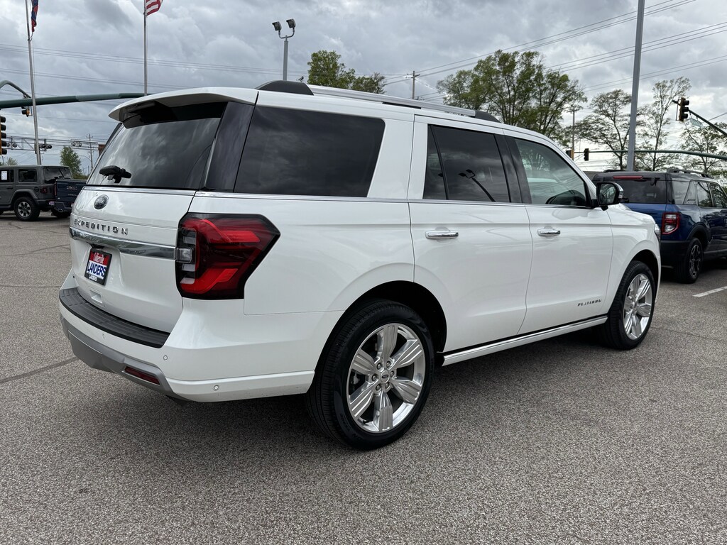 Buy your vehicle from the #1 Volume Ford Dealer in the Mid South! Equipment Group 600A Standard Package, Heavy-Duty Trailer Tow Package (26mm Engine Radiator, 360-Degree Camera w/Trailer Reverse Guidance, Front Tow Hooks, Integrated Trailer Brake Controller, and Pro Trailer Backup Assist), 4WD, 1st & 2nd Row Floor Liners w/Carpet Mats, 22 Speakers, 3rd row seats: split-bench, 4-Wheel Disc Brakes, ABS brakes, Adaptive suspension, Adjustable pedals, Air Conditioning, Alloy wheels, AM/FM radio: SiriusXM with 360L, Auto High-beam Headlights, Auto-dimming door mirrors, Auto-dimming Rear-View mirror, Automatic temperature control, Brake assist, Bumpers: body-color, Compass, Delay-off headlights, Driver door bin, Driver vanity mirror, Dual front impact airbags, Dual front side impact airbags, Electronic Stability Control, Emergency communication system: SYNC 4 911 Assist, Exterior Parking Camera Rear, Four wheel independent suspension, Front anti-roll bar, Front Bucket Seats, Front Center Armrest, Front dual zone A/C, Front fog lights, Front License Plate Bracket, Front reading lights, Fully automatic headlights, Garage door transmitter, Genuine wood console insert, Genuine wood dashboard insert, Genuine wood door panel insert, Heated door mirrors, Heated front seats, Heated rear seats, Heated steering wheel, Heated/Ventilated Prem Lthr Front Captain's Chairs, Illuminated entry, Leather steering wheel, Low tire pressure warning, Memory seat, Navigation system: Connected Navigation, Occupant sensing airbag, Outside temperature display, Overhead airbag, Overhead console, Panic alarm, Passenger door bin, Passenger vanity mirror, Pedal memory, Power door mirrors, Power driver seat, Power Liftgate, Power moonroof, Power passenger seat, Power steering, Power windows, Radio data system, Radio: B&O Unleashed Sound System by Bang & Olufsen, Rain sensing wipers, Rear air conditioning, Rear anti-roll bar, Rear audio controls, Rear reading lights, Rear window defroster, Rear window wiper, Reclining 3rd row seat, Remote keyless entry, Security system, SiriusXM w/360L, Speed control, Speed-sensing steering, Speed-Sensitive Wipers, Split folding rear seat, Spoiler, Steering wheel memory, Steering wheel mounted audio controls, SYNC 4 w/Enhanced Voice Recognition, Tachometer, Telescoping steering wheel, Tilt steering wheel, Traction control, Trip computer, Turn signal indicator mirrors, Variably intermittent wipers, Ventilated front seats, Voltmeter, Wheels: 22" 12-Spoke Polished Aluminum, and Wheels: 22" 6-Spoke Polished Aluminum.