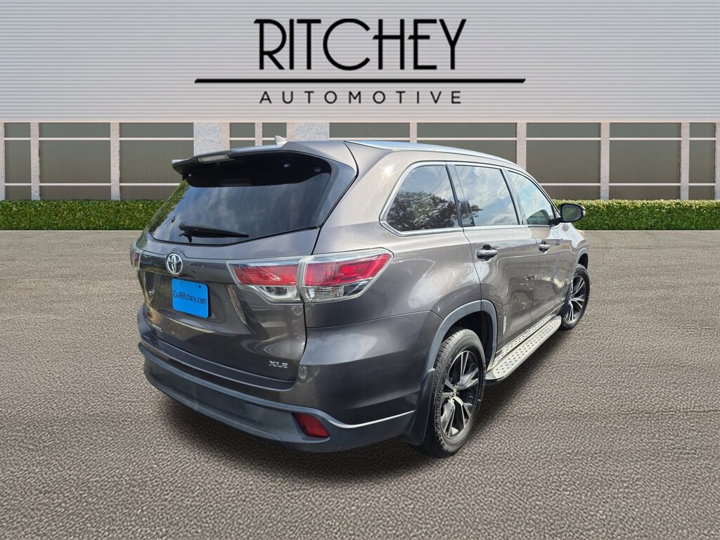 Ritchey Automotive is proud to present you with another True Market Priced Pre-Owned Vehicle. This 2016 Toyota Highlander XLE V6 is loaded with the following Factory Options:3rd row seats: split-bench, 4-Wheel Disc Brakes, 4.154 Axle Ratio, 6 Speakers, ABS brakes, Air Conditioning, Alloy wheels, AM/FM radio: SiriusXM, Auto-dimming Rear-View mirror, Automatic temperature control, Brake assist, Bumpers: body-color, CD player, Delay-off headlights, Driver door bin, Driver vanity mirror, Dual front impact airbags, Dual front side impact airbags, Electronic Stability Control, Exterior Parking Camera Rear, Four wheel independent suspension, Front anti-roll bar, Front Bucket Seats, Front Center Armrest, Front dual zone A/C, Front fog lights, Front reading lights, Fully automatic headlights, Garage door transmitter, Heated door mirrors, Heated front seats, Illuminated entry, Knee airbag, Leather Seat Material, Leather Shift Knob, Low tire pressure warning, Navigation System, Occupant sensing airbag, Outside temperature display, Overhead airbag, Overhead console, Panic alarm, Passenger door bin, Passenger vanity mirror, Power door mirrors, Power driver seat, Power Liftgate, Power moonroof, Power steering, Power windows, Radio: Entune Premium Audio w/Nav & App Suite, Rear air conditioning, Rear anti-roll bar, Rear reading lights, Rear window defroster, Rear window wiper, Reclining 3rd row seat, Remote keyless entry, Roof rack: rails only, Security system, Speed control, Speed-sensing steering, Split folding rear seat, Spoiler, Steering wheel mounted audio controls, Tachometer, Telescoping steering wheel, Tilt steering wheel, Traction control, Trip computer, Turn signal indicator mirrors, Variably intermittent wipers, and Wheels: 18" Split 5-Spoke Machined-Face Alloy.